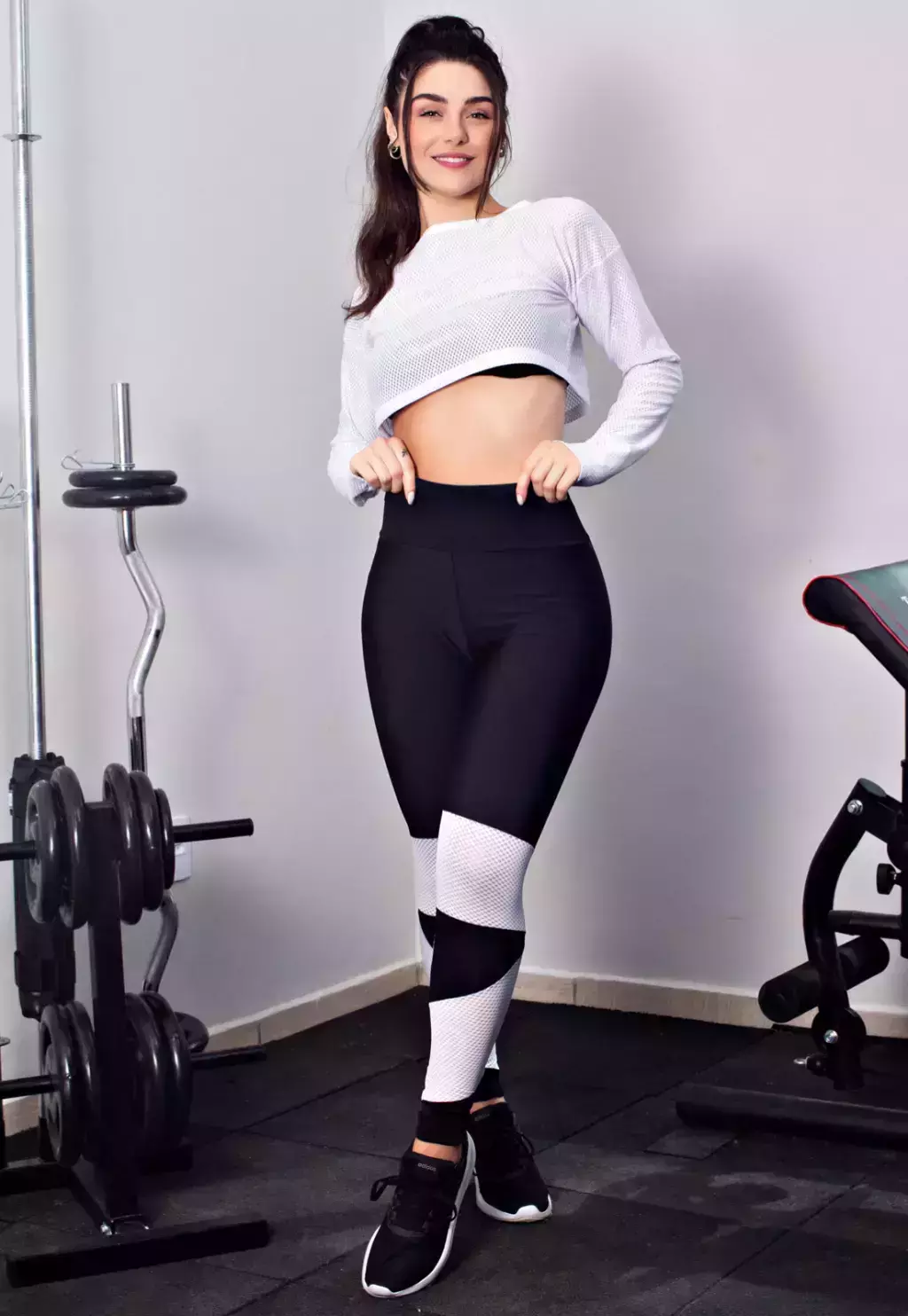 O tecido possui bastante elastano o que gera uma ótima elasticidade a peça.